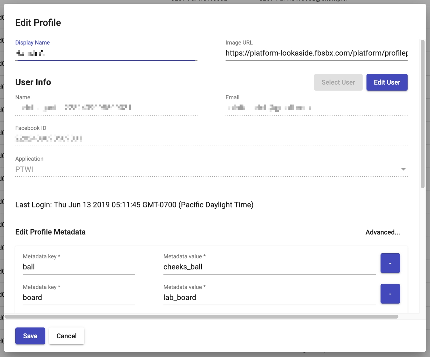 Since Profiles must be connected to a user, when making a new profile you can use the "Select User" button to find the user that will own this profile. If you are editing an existing profile, you can use the "Edit User" button to open the Edit User panel for that user. Existing profiles cannot be reassigned to another user.