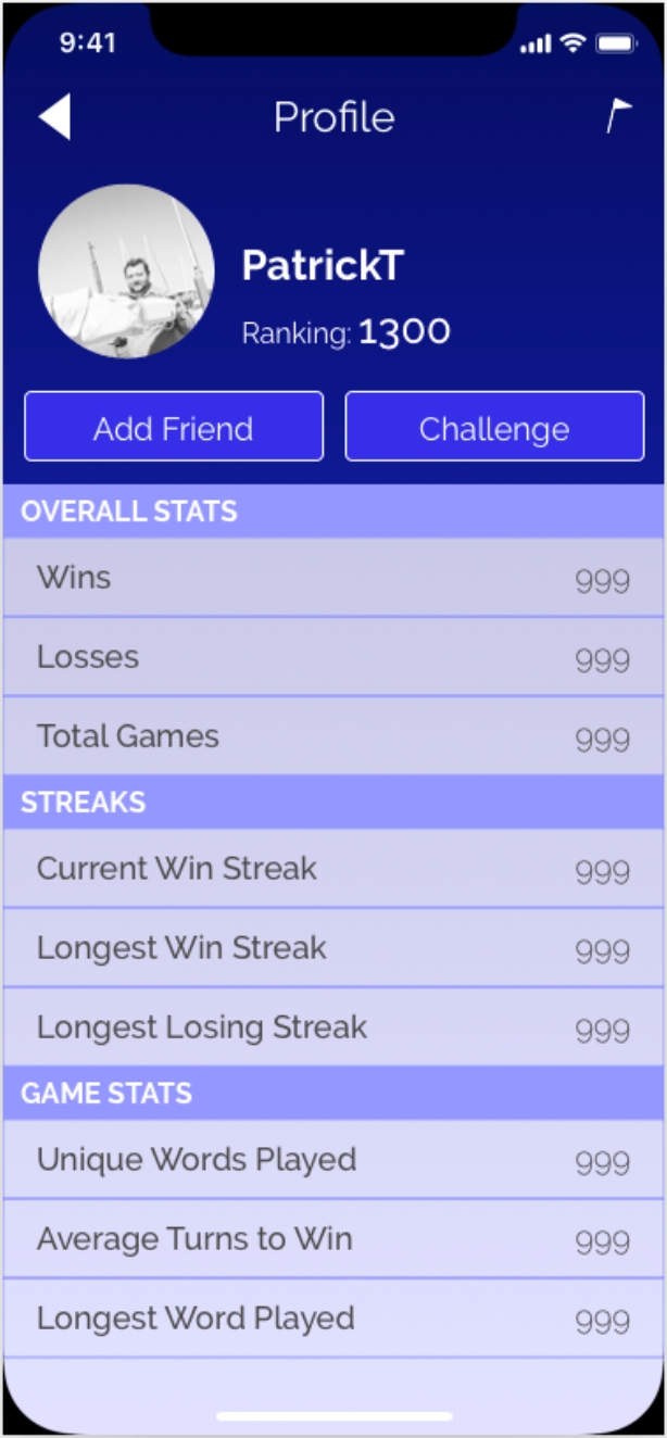 As mentioned in the previous section, the Profile metadata is a key/value store for just about anything that you'd want to be publicly facing (as Inventory is private) in a Profile. This is a great place for storing info that you might want different Profiles to know about each other. For example, say you have a game where someone can earn points to increase a numeric rank. In order to see that information, it needs to be stored in a publicly accessible place. Take this wireframe image for example: